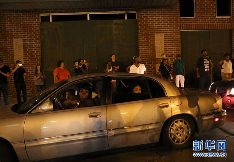 2016年8月14日,抗议的人群聚集在美国威斯康星州密尔沃基北部市郊一社区警察局外。