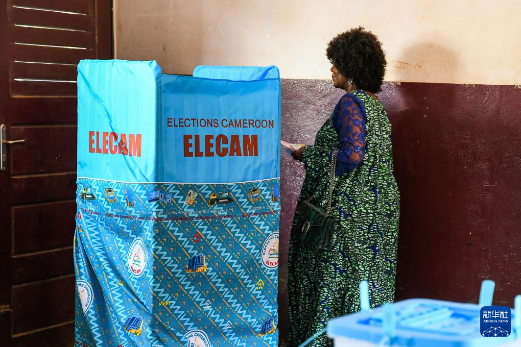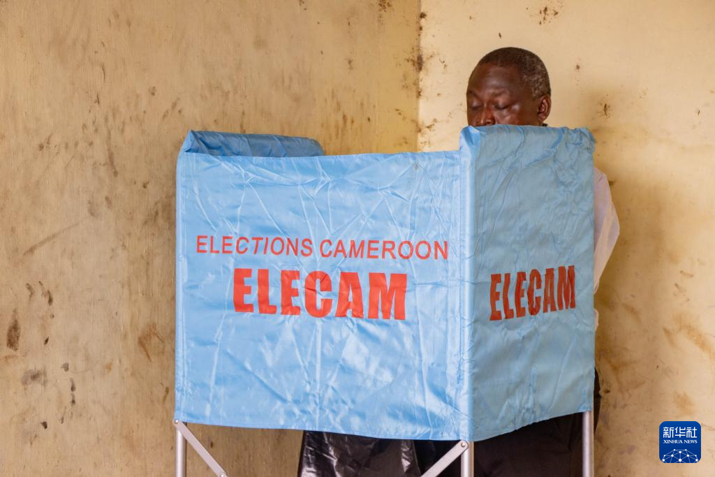 10月12日,在喀麦隆首都雅温得,一名选民参加投票。新华社发(科普索 摄)