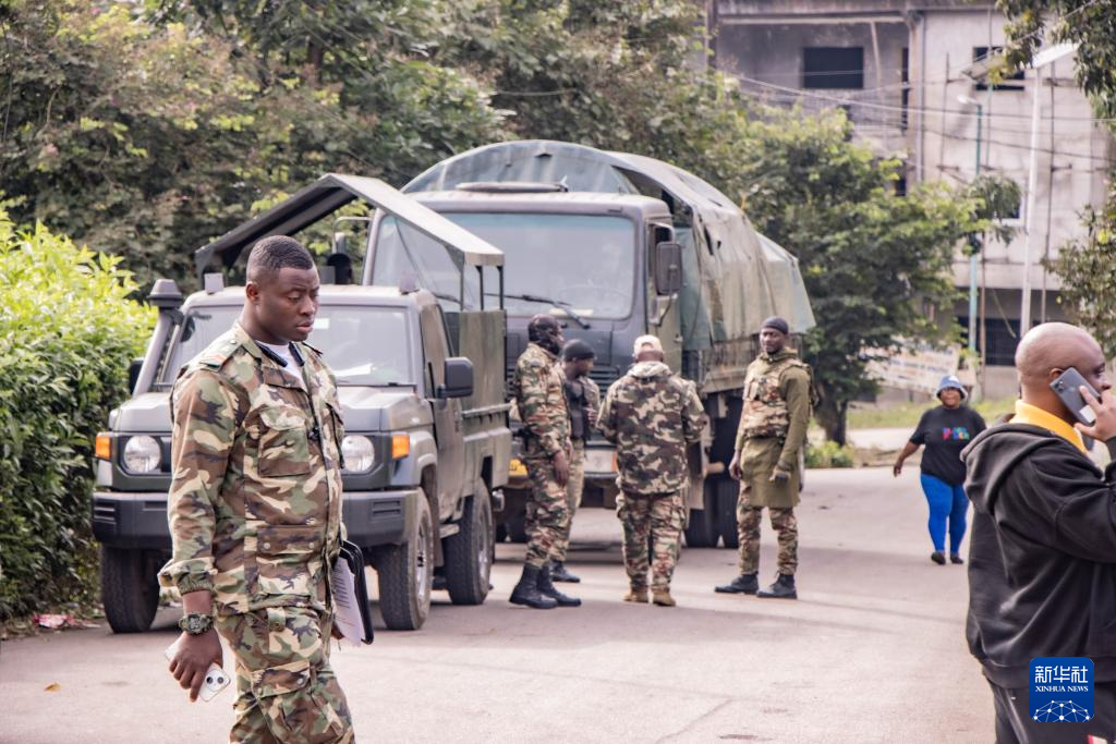 10月12日,在喀麦隆西南大区首府布埃亚,喀麦隆安全部队在投票站附近巡逻。新华社发(穆朗·廷古姆 摄)