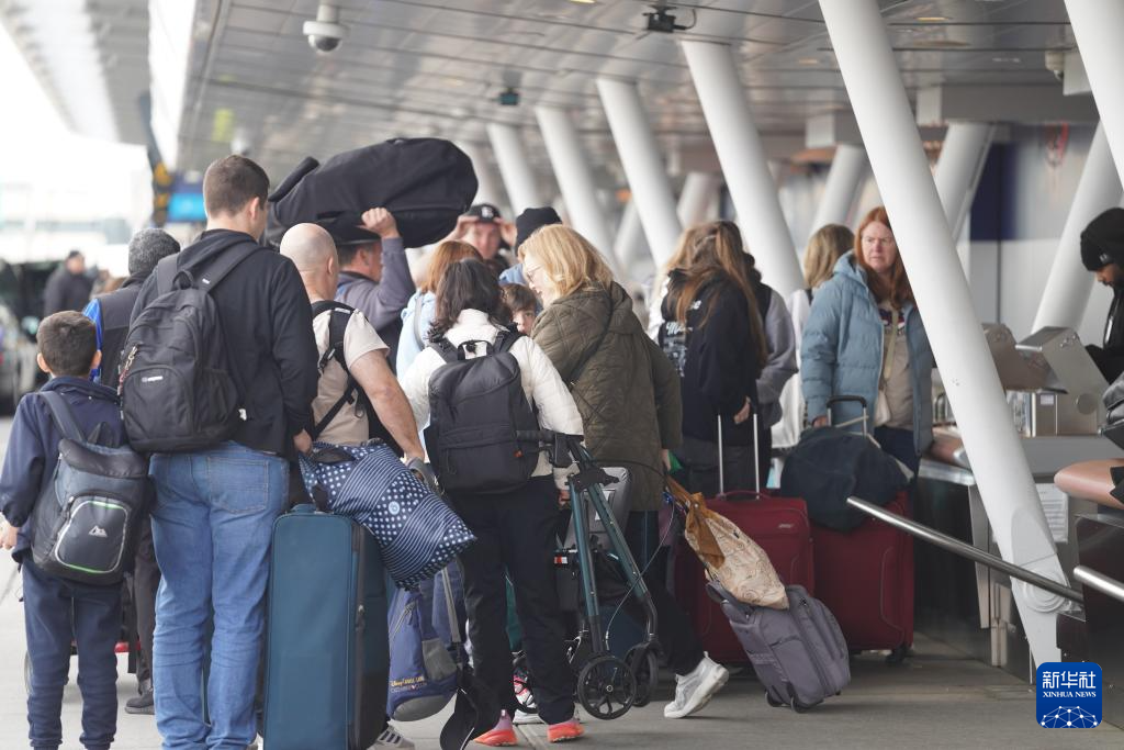 11月5日,在美国纽约肯尼迪国际机场,乘客排队值机。新华社记者 张凤国 摄