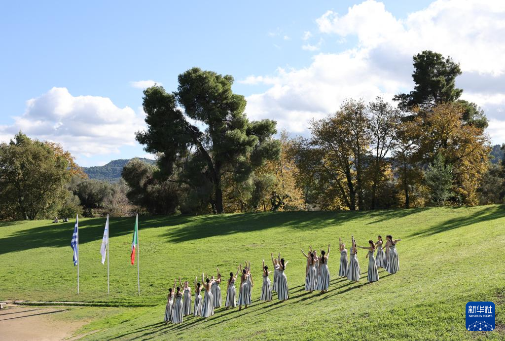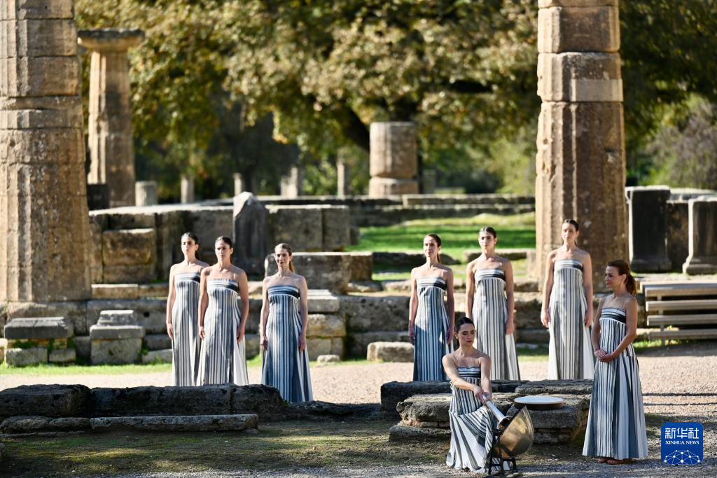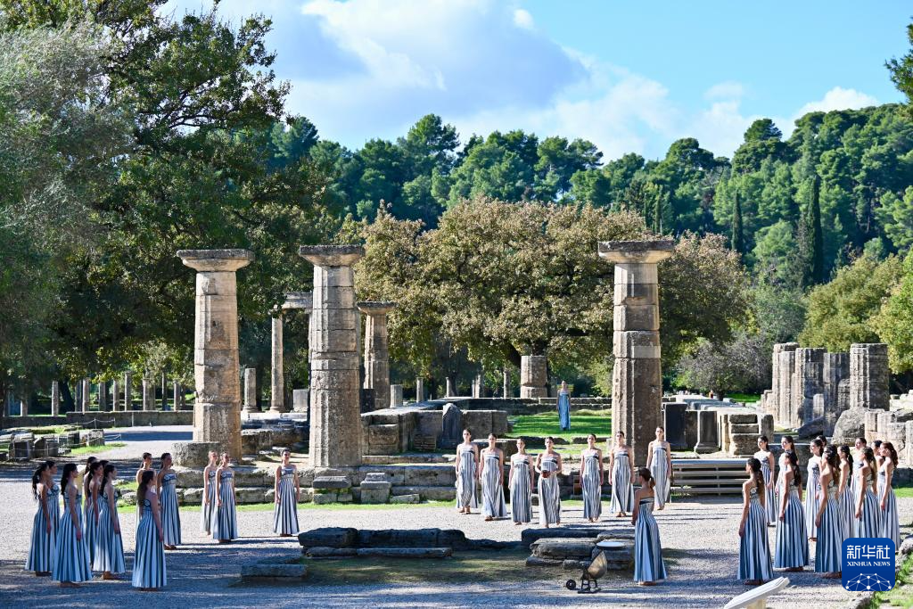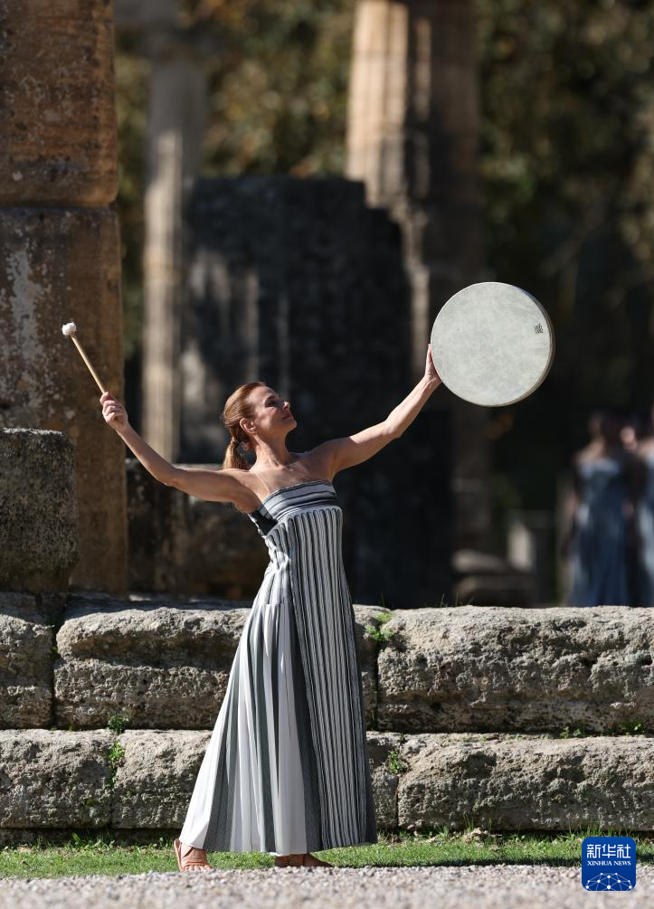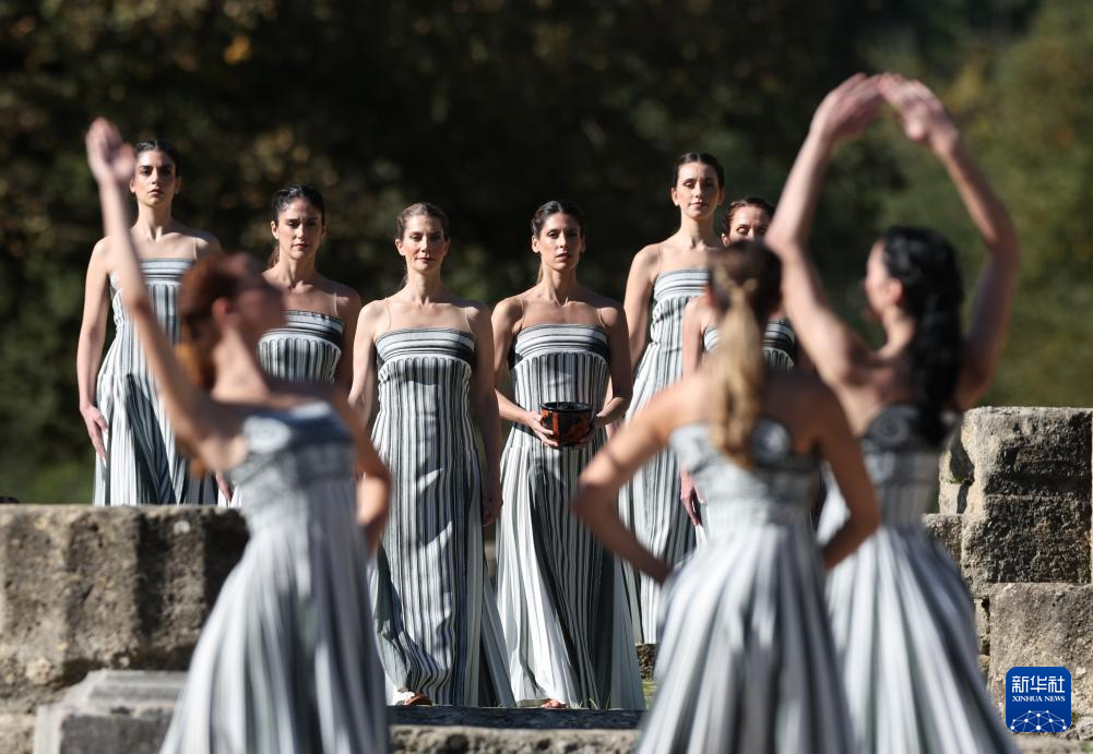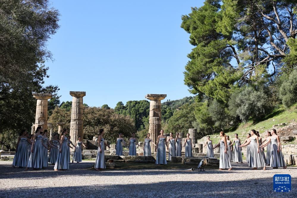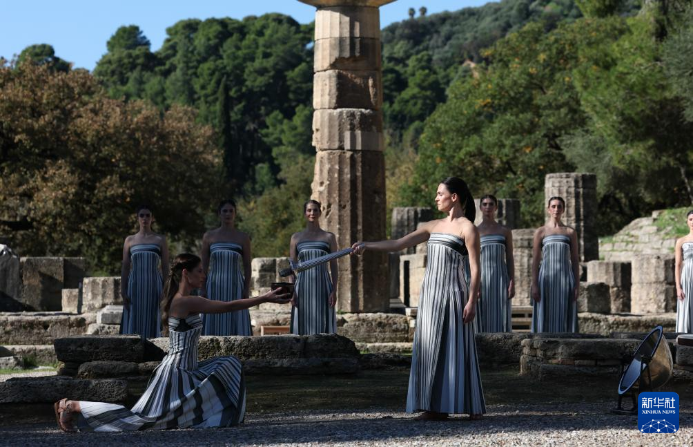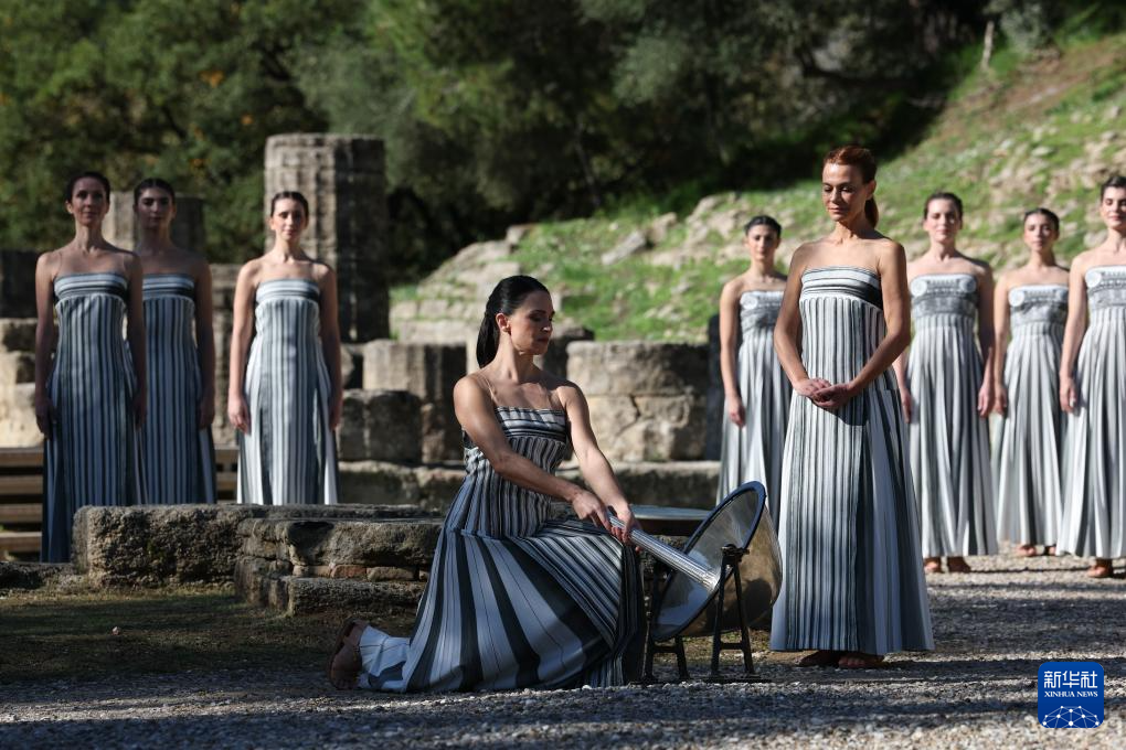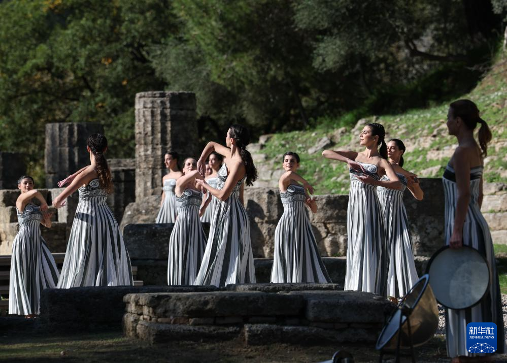 当日,2026年米兰-科尔蒂纳冬奥会圣火火种采集仪式在希腊伯罗奔尼撒半岛的古奥林匹亚遗址举行彩排。