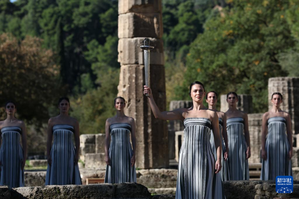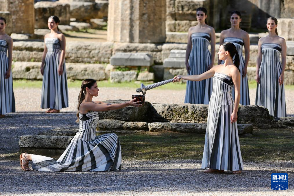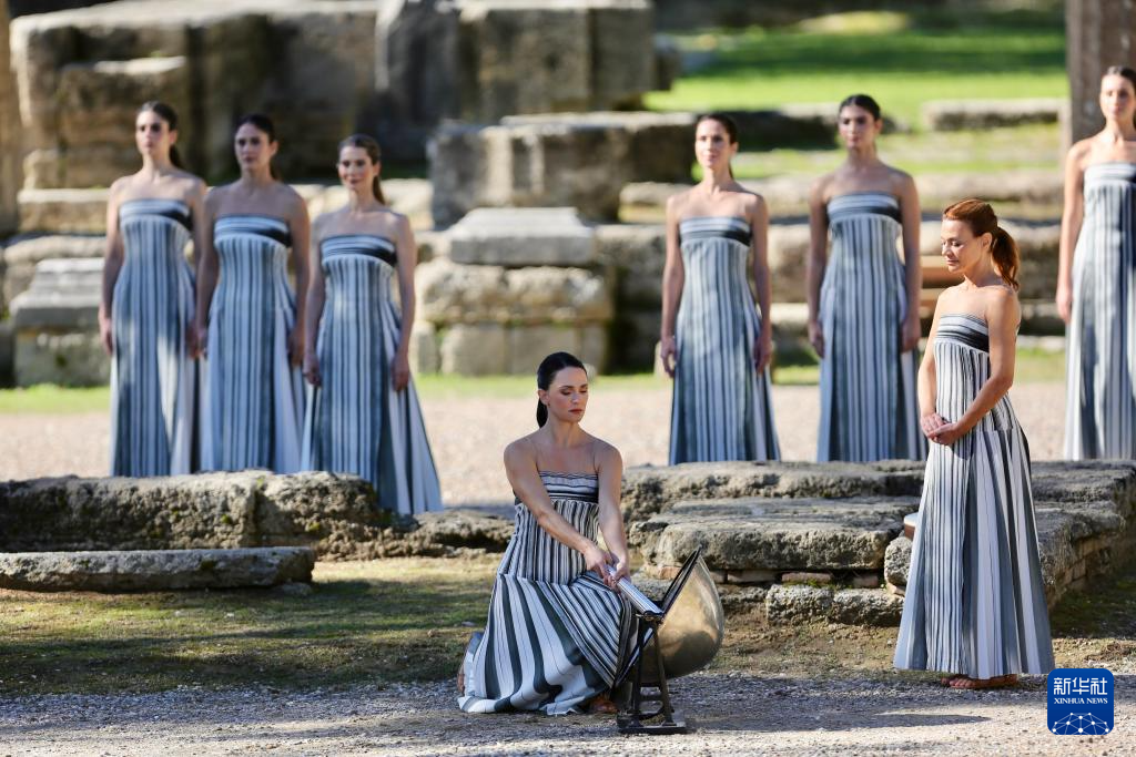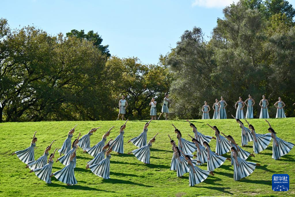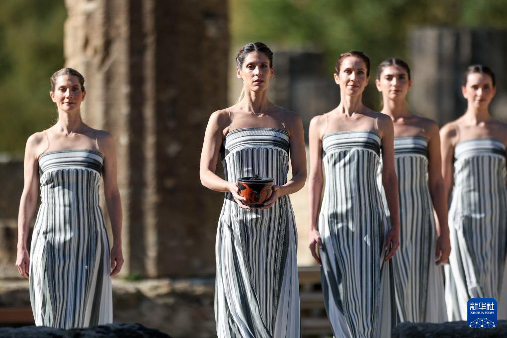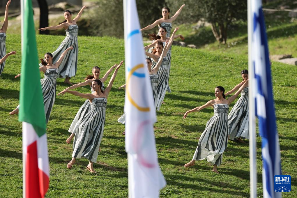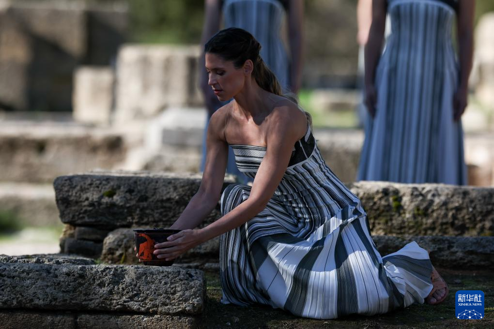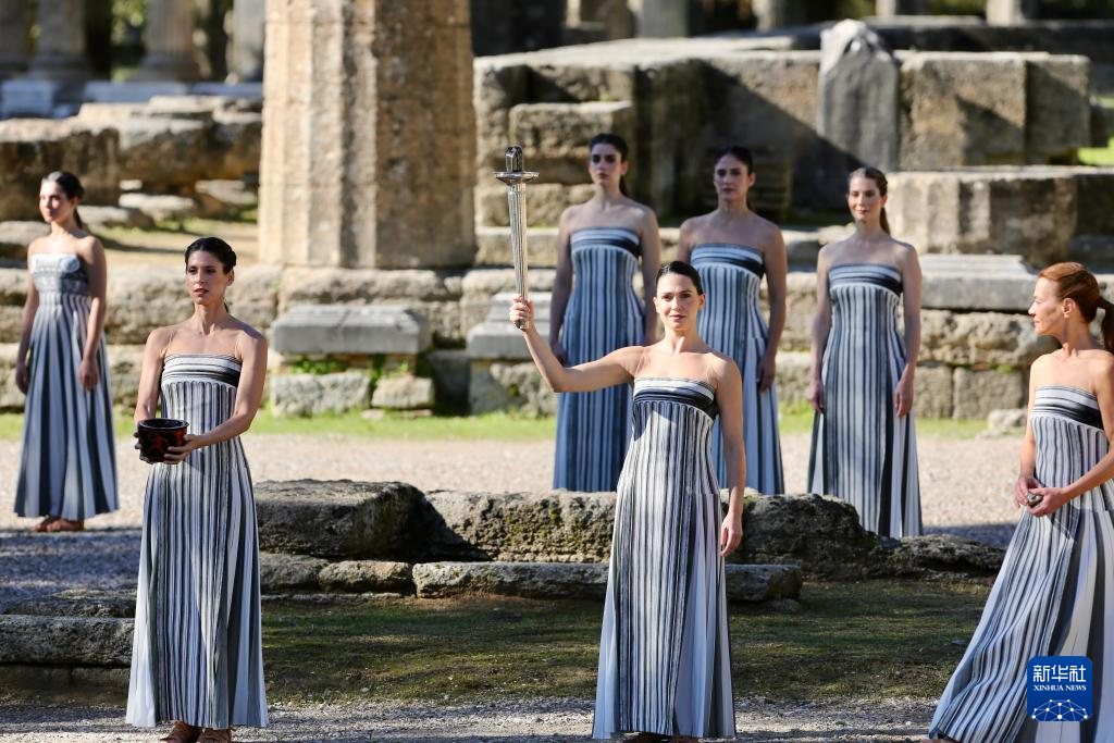 当日,2026年米兰-科尔蒂纳冬奥会圣火火种采集仪式在希腊伯罗奔尼撒半岛的古奥林匹亚遗址举行彩排。
