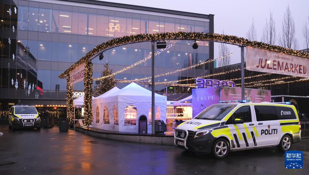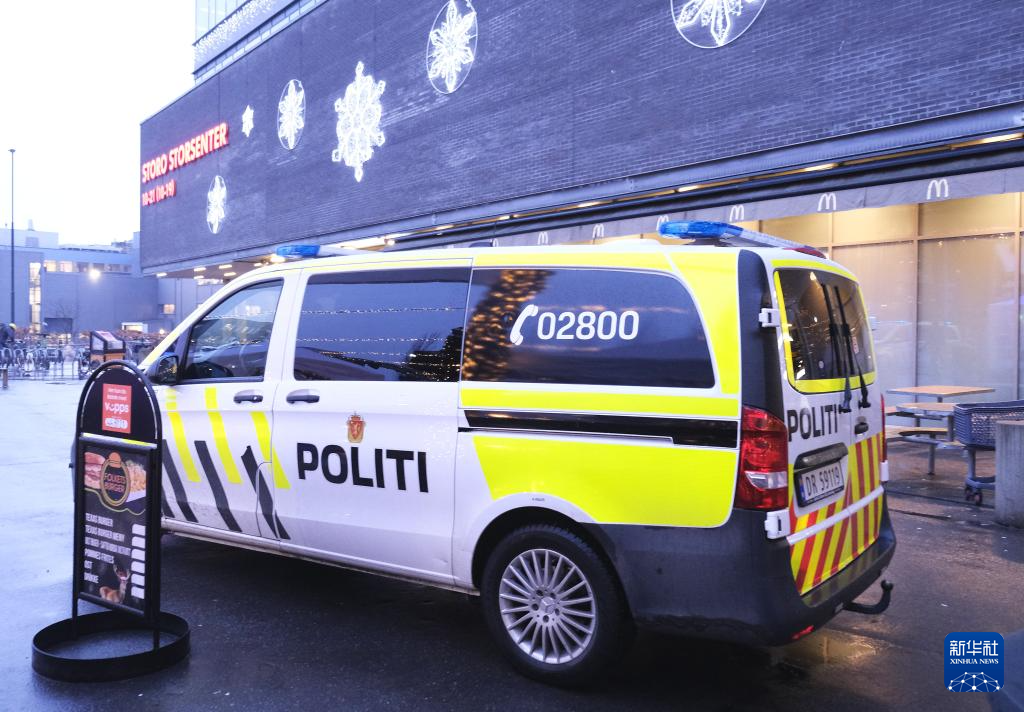 12月8日,一辆警车停在挪威首都奥斯陆的斯托罗购物中心外。新华社发(陈雅琴 摄)