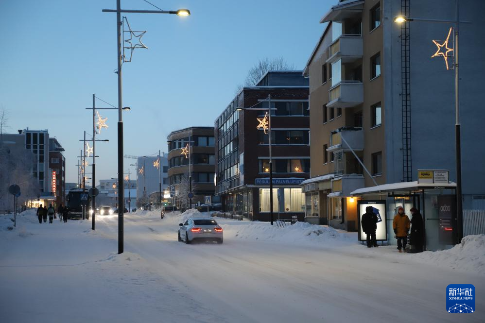 这是1月3日拍摄的芬兰罗瓦涅米街景。
