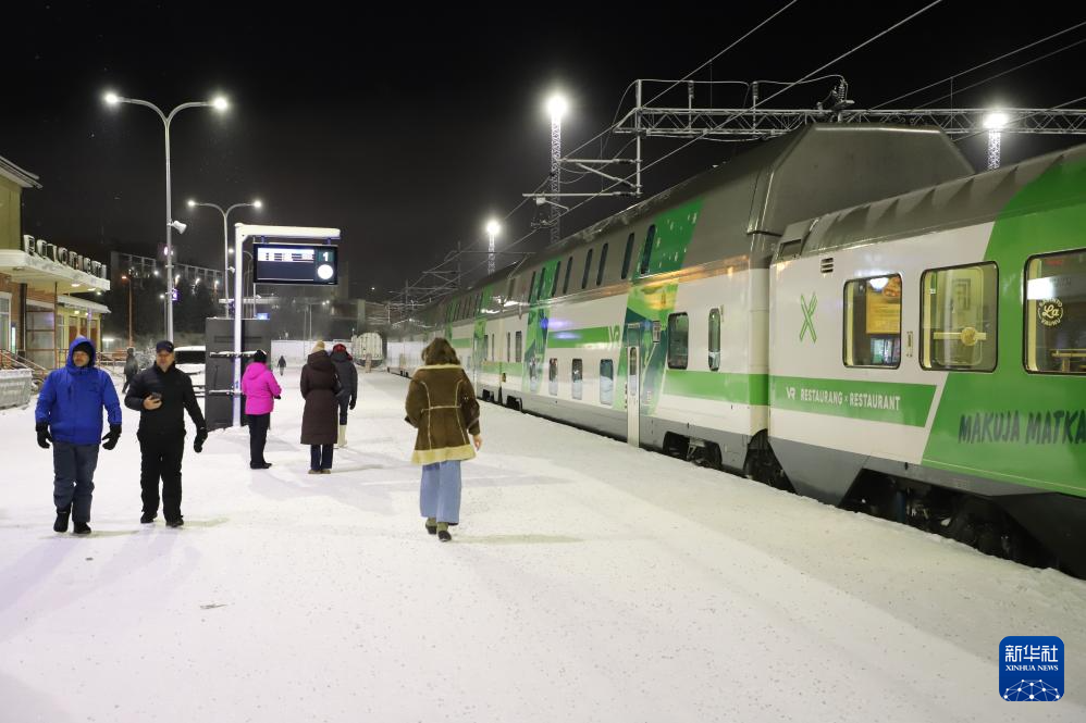 1月2日,人们在芬兰罗瓦涅米火车站站台上候车。