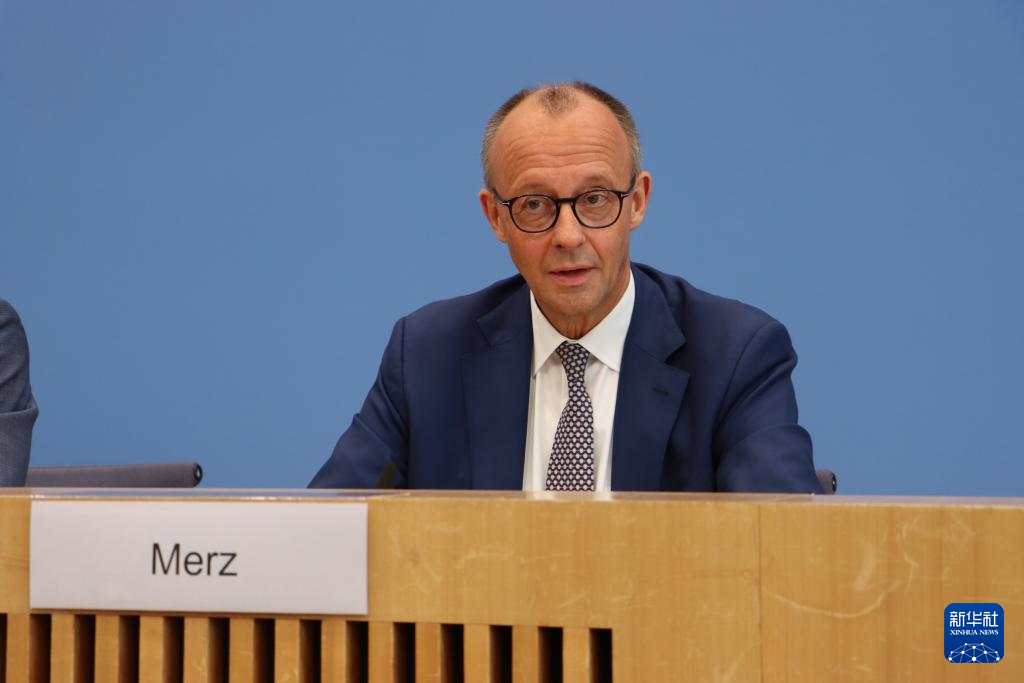 7月18日,德国总理默茨出席在柏林举行的夏季新闻发布会。新华社记者 李函林 摄
