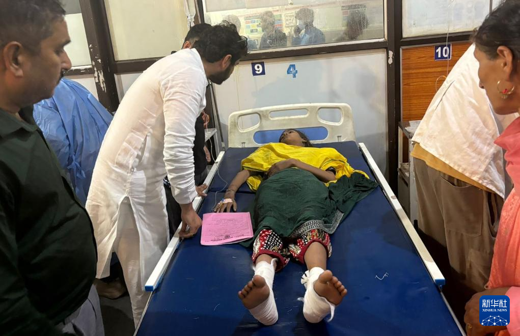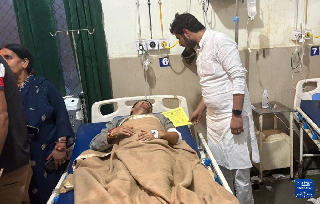 8月14日,在印控克什米尔地区的吉什德瓦尔,一名伤者在当地医院接受治疗。新华社发