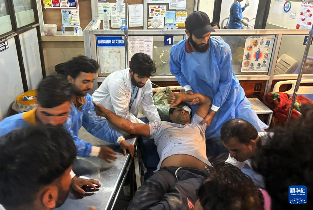 8月14日,在印控克什米尔地区的吉什德瓦尔,人们在当地医院运送一名伤者。新华社发
