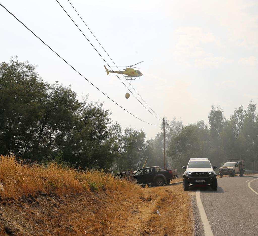8月22日,在葡萄牙乌尼艾什-迪塞拉附近,消防人员和直升机紧急扑灭一处起火点。新华社记者 荀伟 摄
