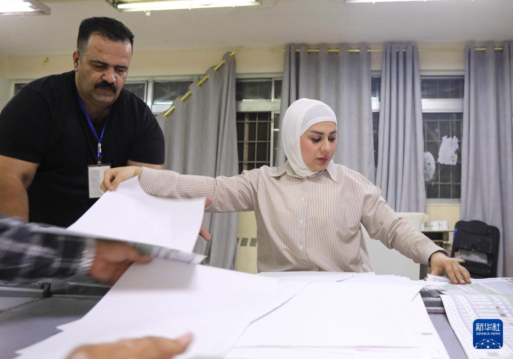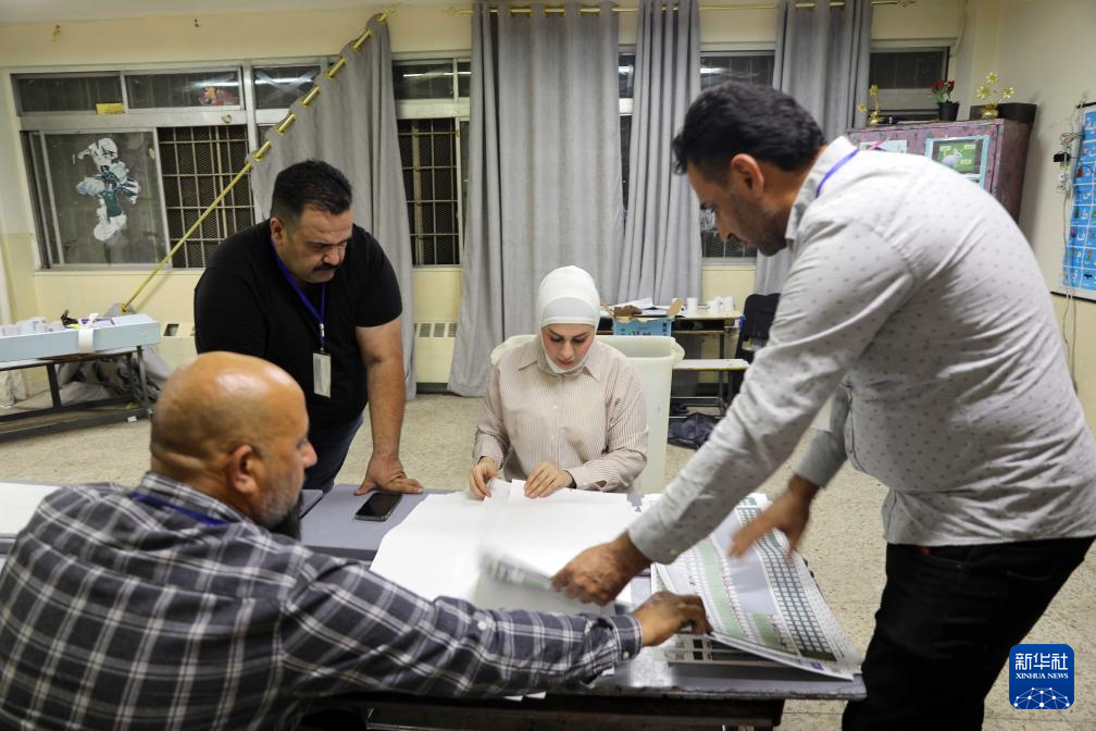11月11日,工作人员在伊拉克巴格达一处投票站内清点选票。新华社发(哈利勒·达伍德 摄)