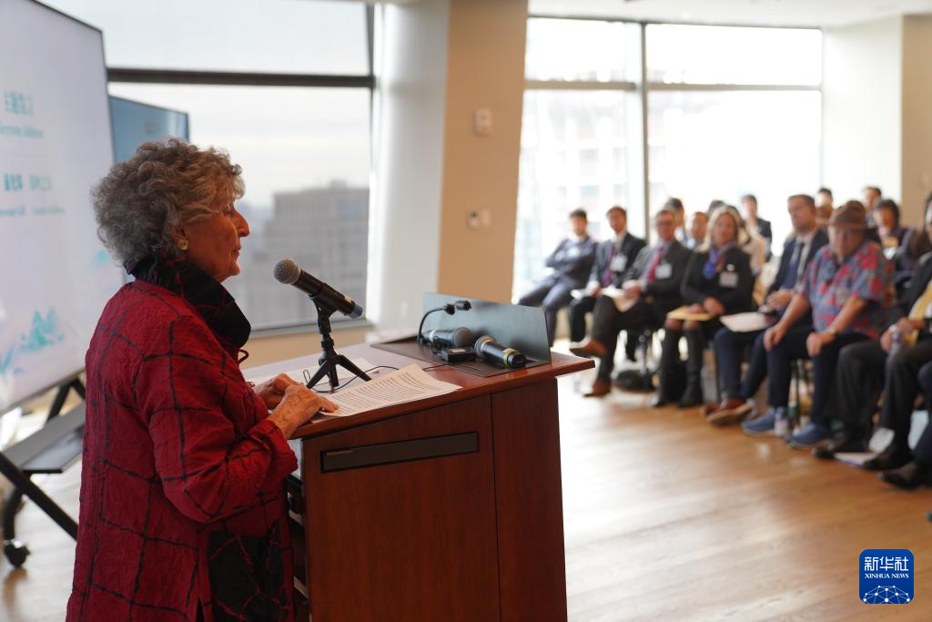 11月25日,在美国纽约举行的2025鼓岭论坛上,“鼓岭之友”蒲光珠分享自己家庭与鼓岭以及中国的故事。新华社记者 张凤国 摄
