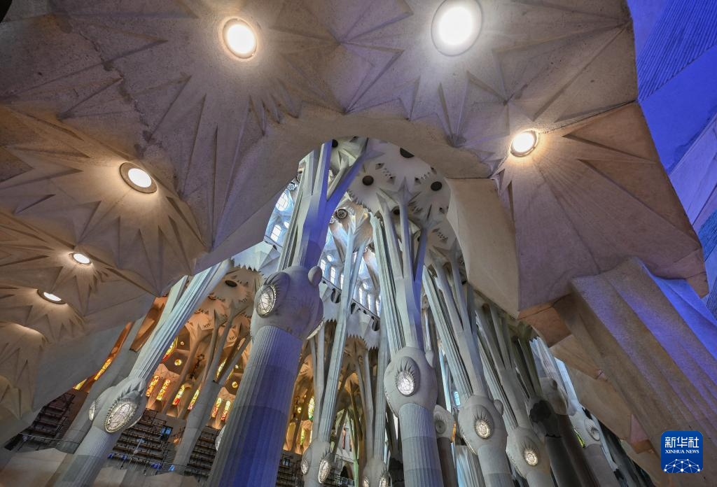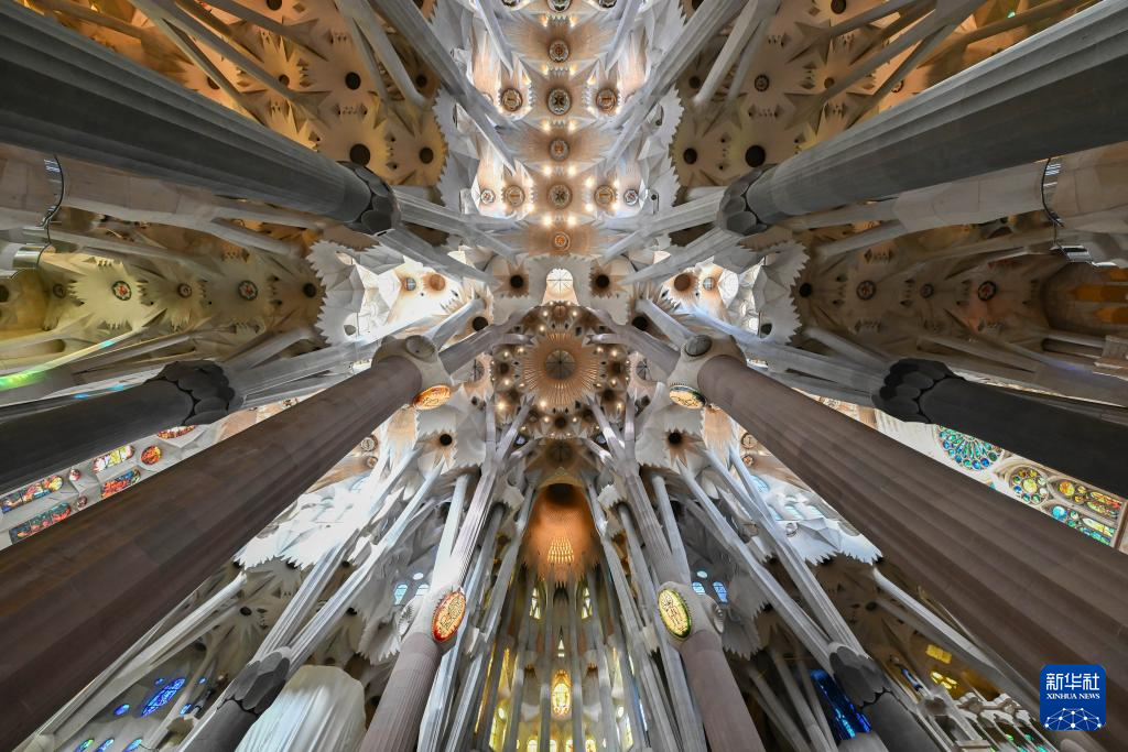 西班牙巴塞罗那地标建筑圣家族大教堂(圣家堂)由西班牙著名建筑师高迪设计,从1882年开始修建至今,预计将于2030年竣工。