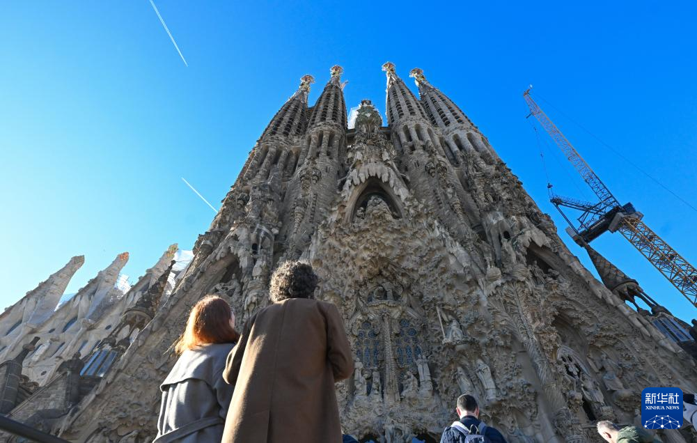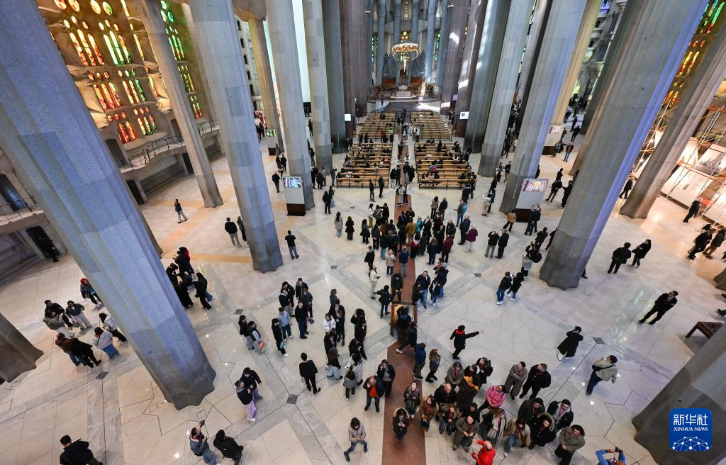 12月1日,在西班牙巴塞罗那,游客在圣家堂游览。