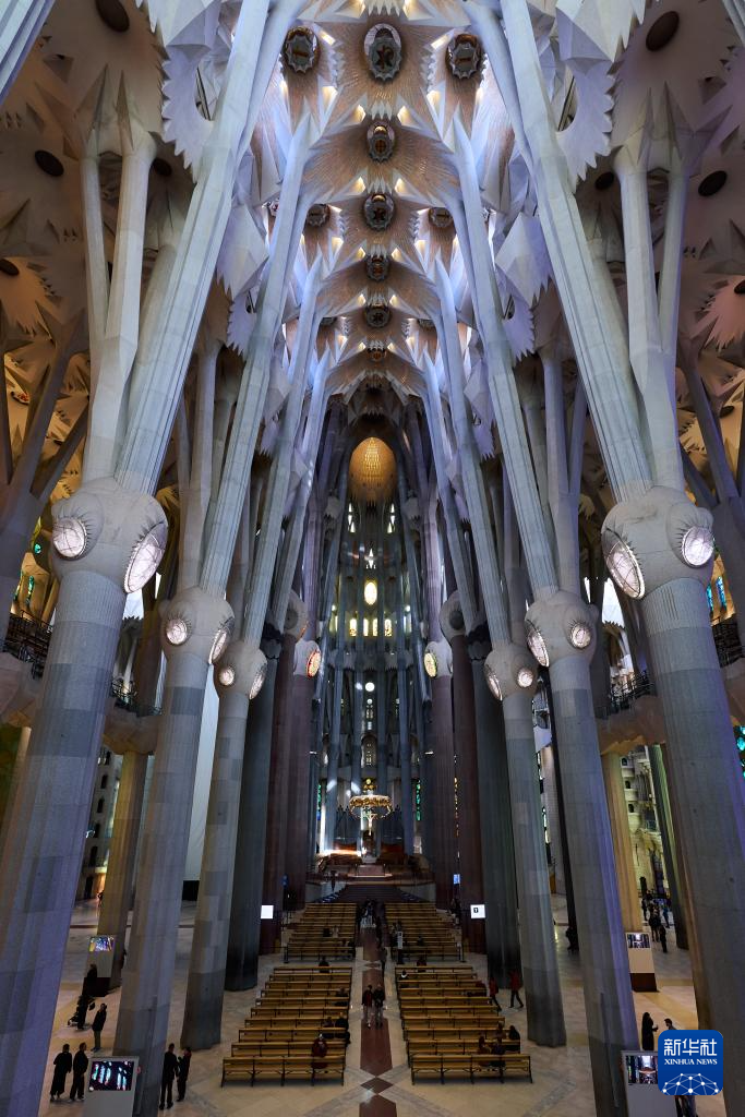 这是12月1日在西班牙巴塞罗那拍摄的圣家堂内景。
