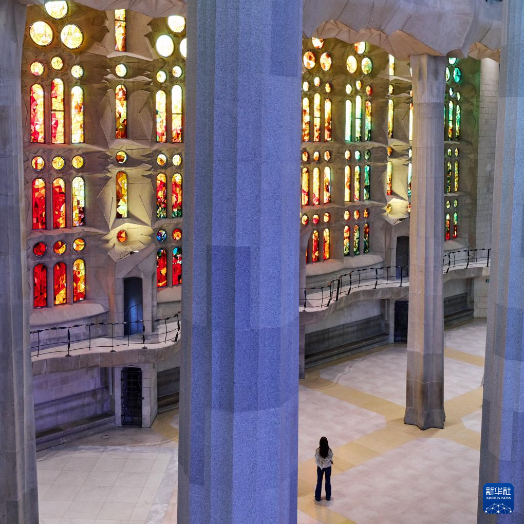 12月1日,一名游客在西班牙巴塞罗那圣家堂内游览。