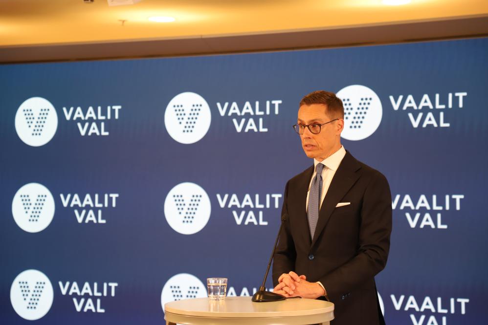 2024年2月11日,在芬兰赫尔辛基市政厅,斯图布与国际媒体见面并回答问题。新华社记者 陈静 摄