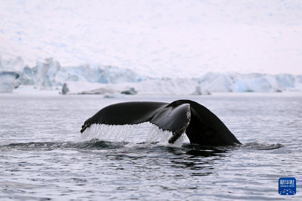 12月13日,一只座头鲸在南极洲阿根廷布朗科考站附近游弋。