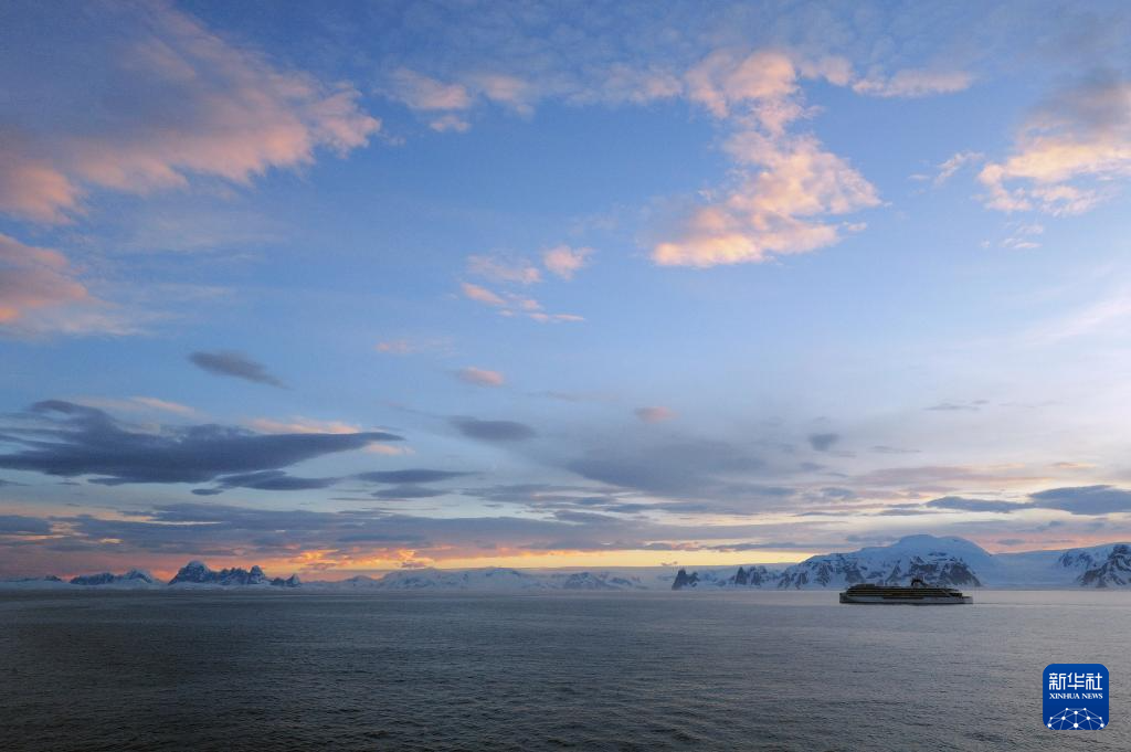 12月14日凌晨2时45分,一艘游轮在日出前行驶在南极洲的海面上。