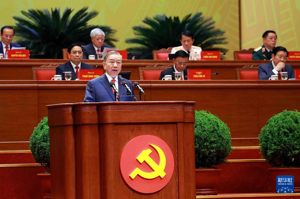 1月20日,在越南首都河内,越共中央总书记苏林在大会上讲话。新华社/越通社