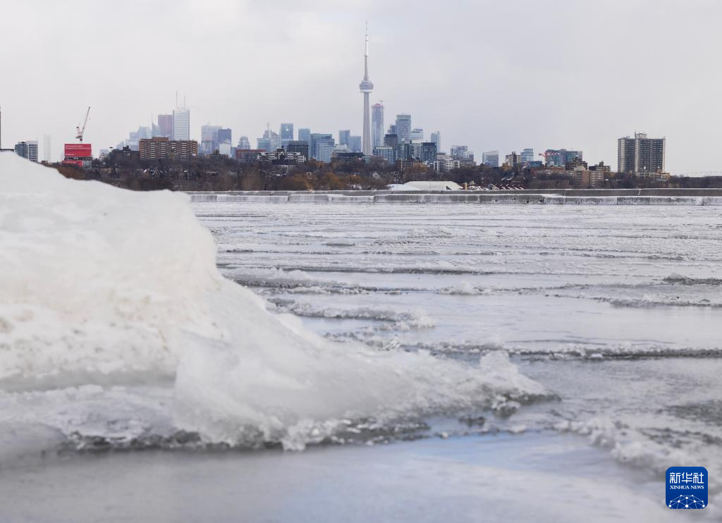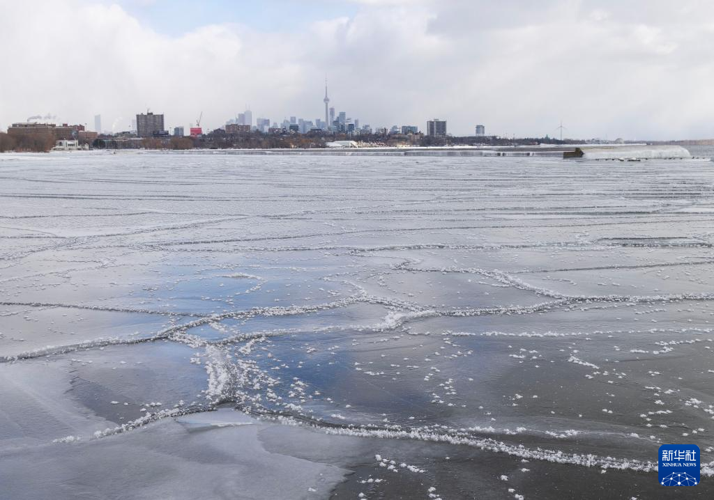 这是1月24日在加拿大多伦多拍摄的结冰的安大略湖。