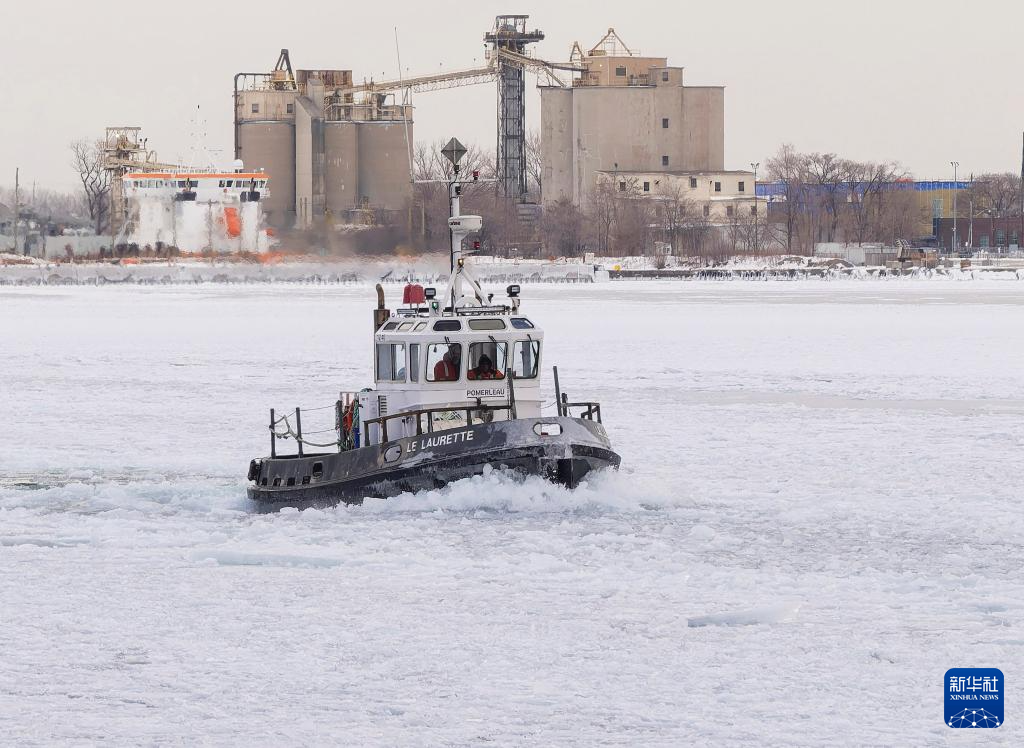 1月24日,在加拿大多伦多,一艘小船行驶在结冰的安大略湖上。