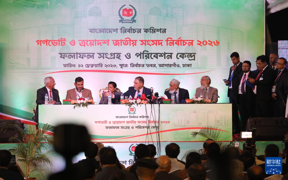2月12日,在孟加拉国首都达卡,孟加拉国选举委员会官员在选举委员会总部宣布计票结果。新华社发(哈比卜·拉赫曼 摄)