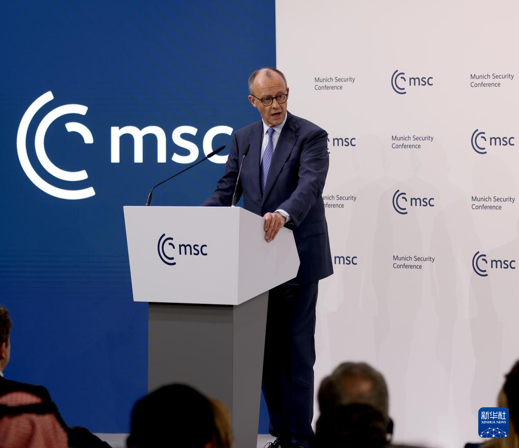 2月13日,在德国慕尼黑,德国总理默茨在第62届慕尼黑安全会议(慕安会)开幕式上致辞。新华社记者 李颖 摄
