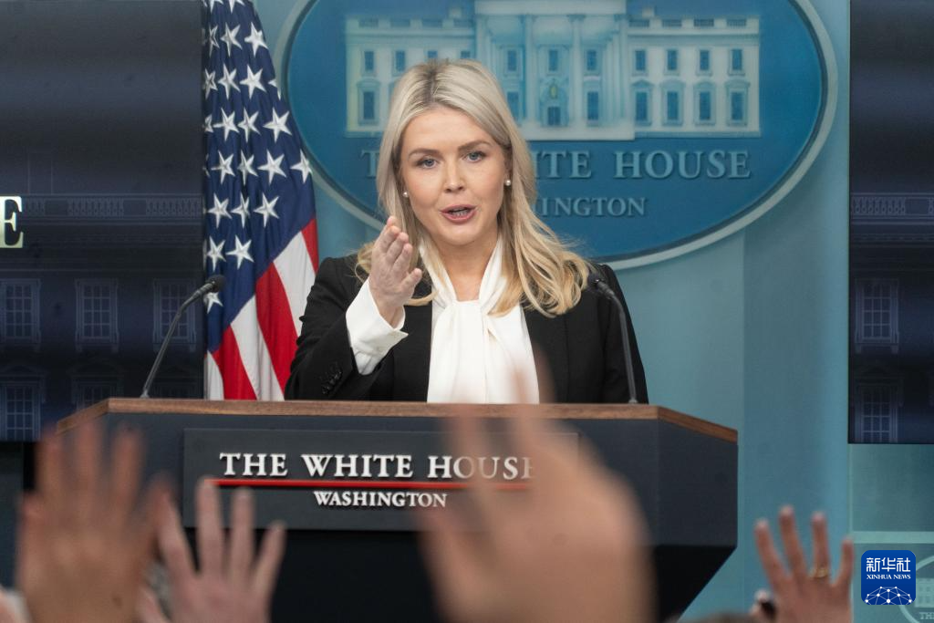 3月4日,在美国首都华盛顿,白宫新闻秘书莱维特出席记者会。新华社发(李源清 摄)