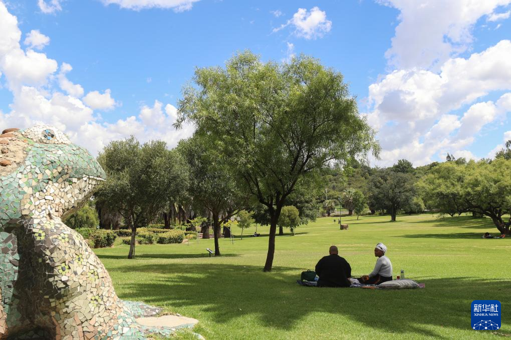 3月4日,人们在南非布隆方丹的草坪上休闲。