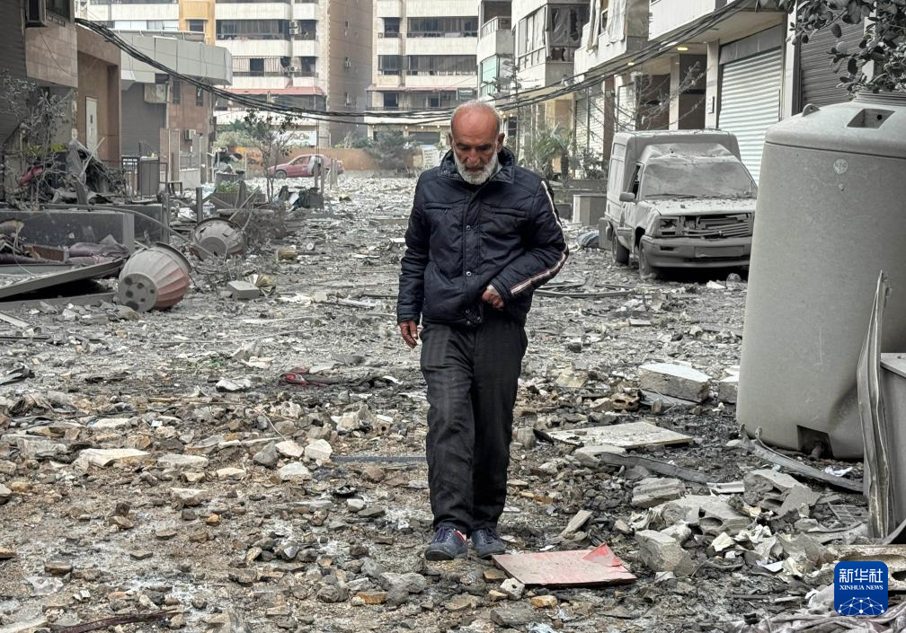 3月7日,在黎巴嫩首都贝鲁特南郊,一名男子行走在以色列袭击后的街道上。新华社发(比拉尔·贾维希 摄)