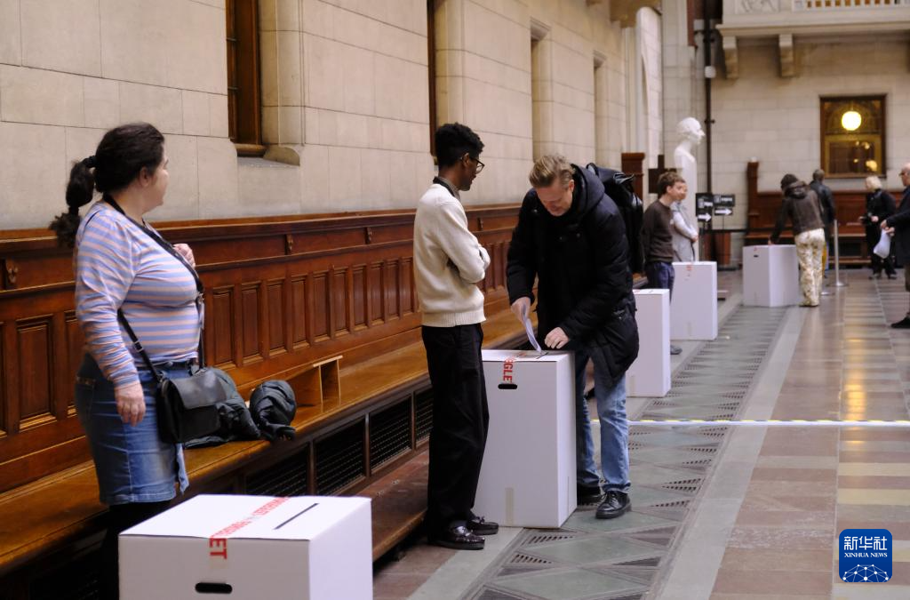 3月24日,在丹麦首都哥本哈根的市政厅,选民将选票投入票箱。新华社发(刘智超 摄)