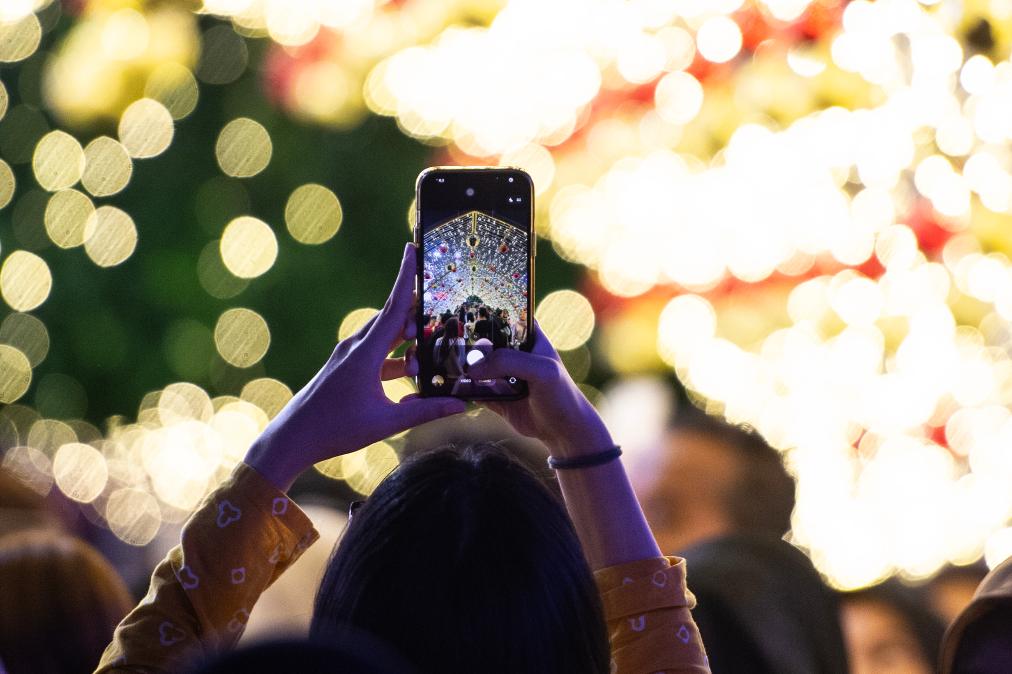 2025年12月23日,一名女子在印度尼西亚雅加达举行的灯光节活动上拍照。新华社发(维里 摄)