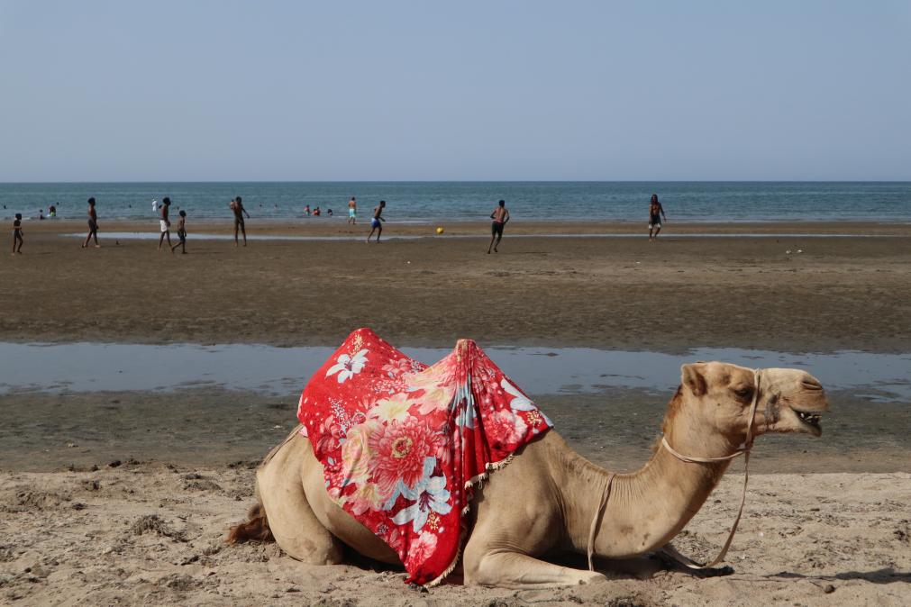 这是2025年6月7日在厄立特里亚马萨瓦海边拍摄的骆驼。新华社记者 刘方强 摄